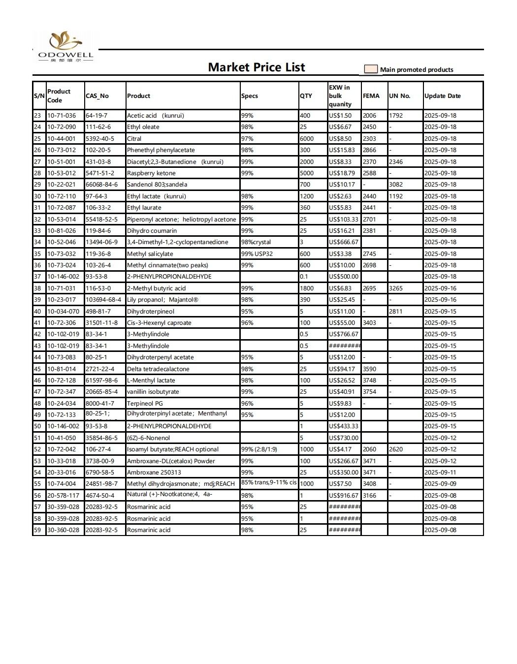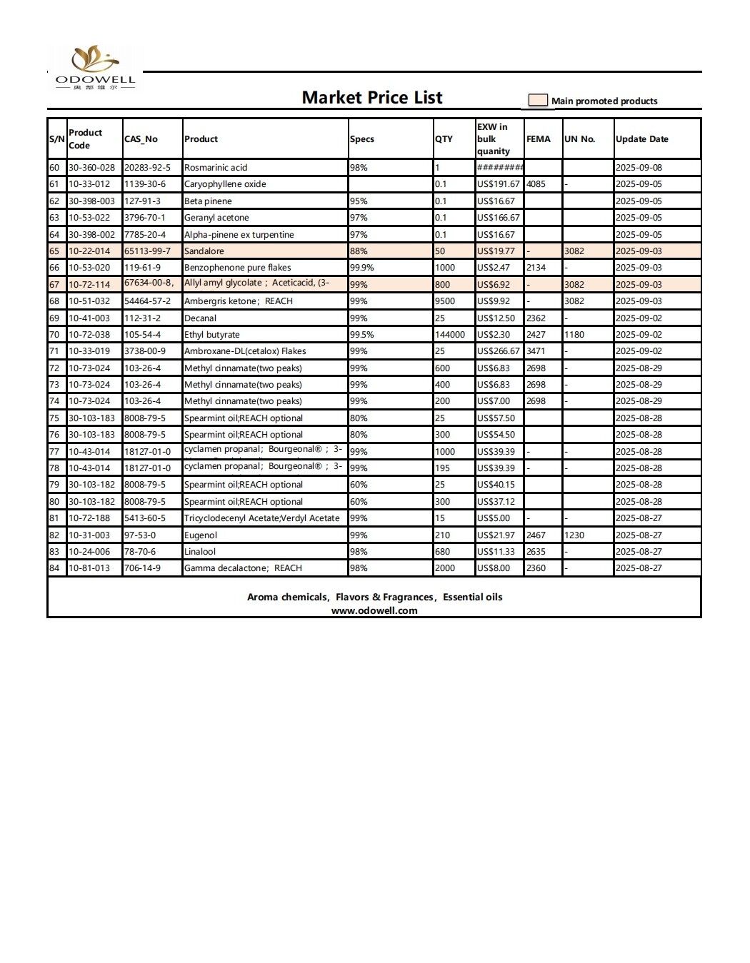 Lista de preços do mercado Odowell-2025.8.27-2025.09.29