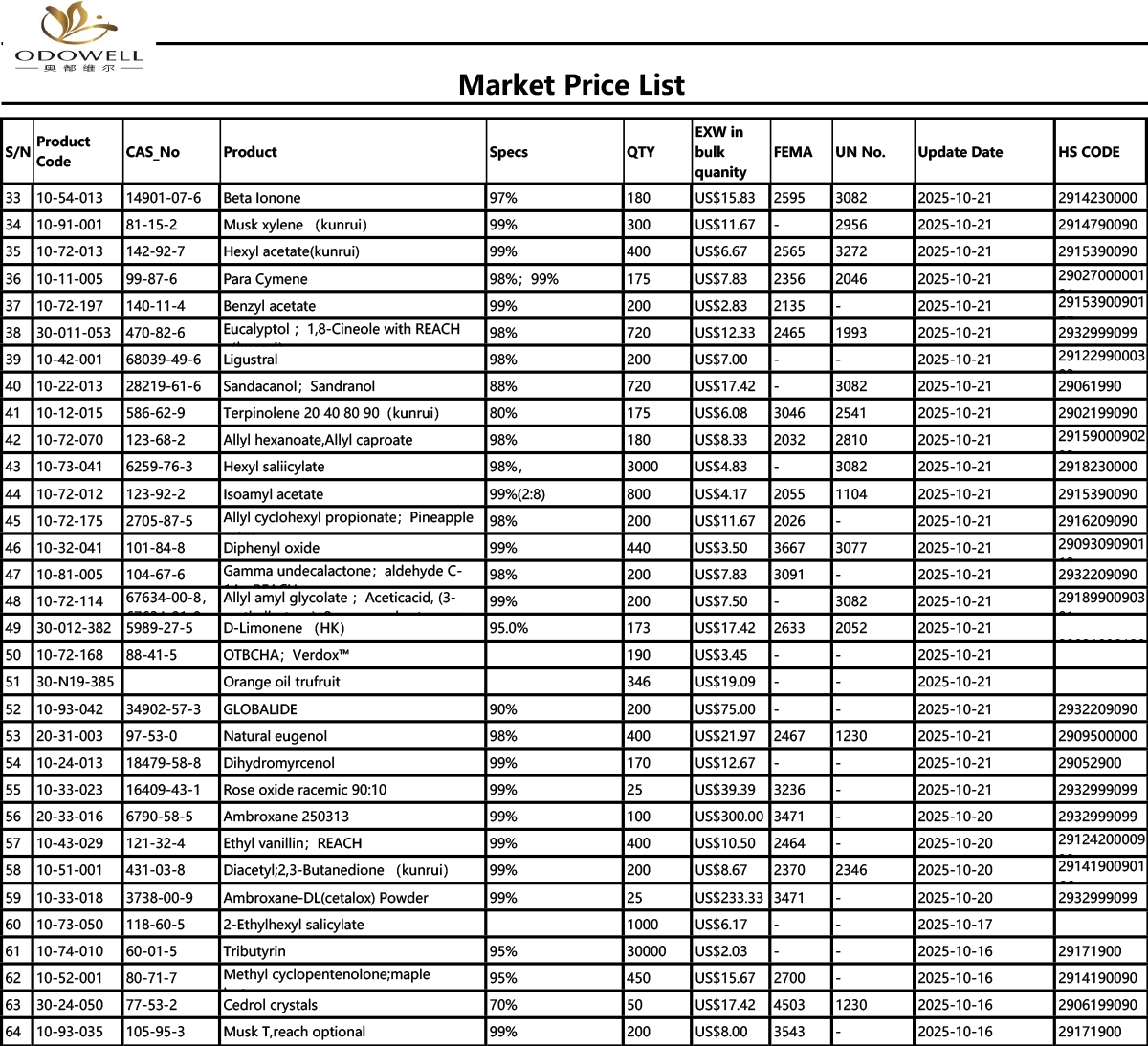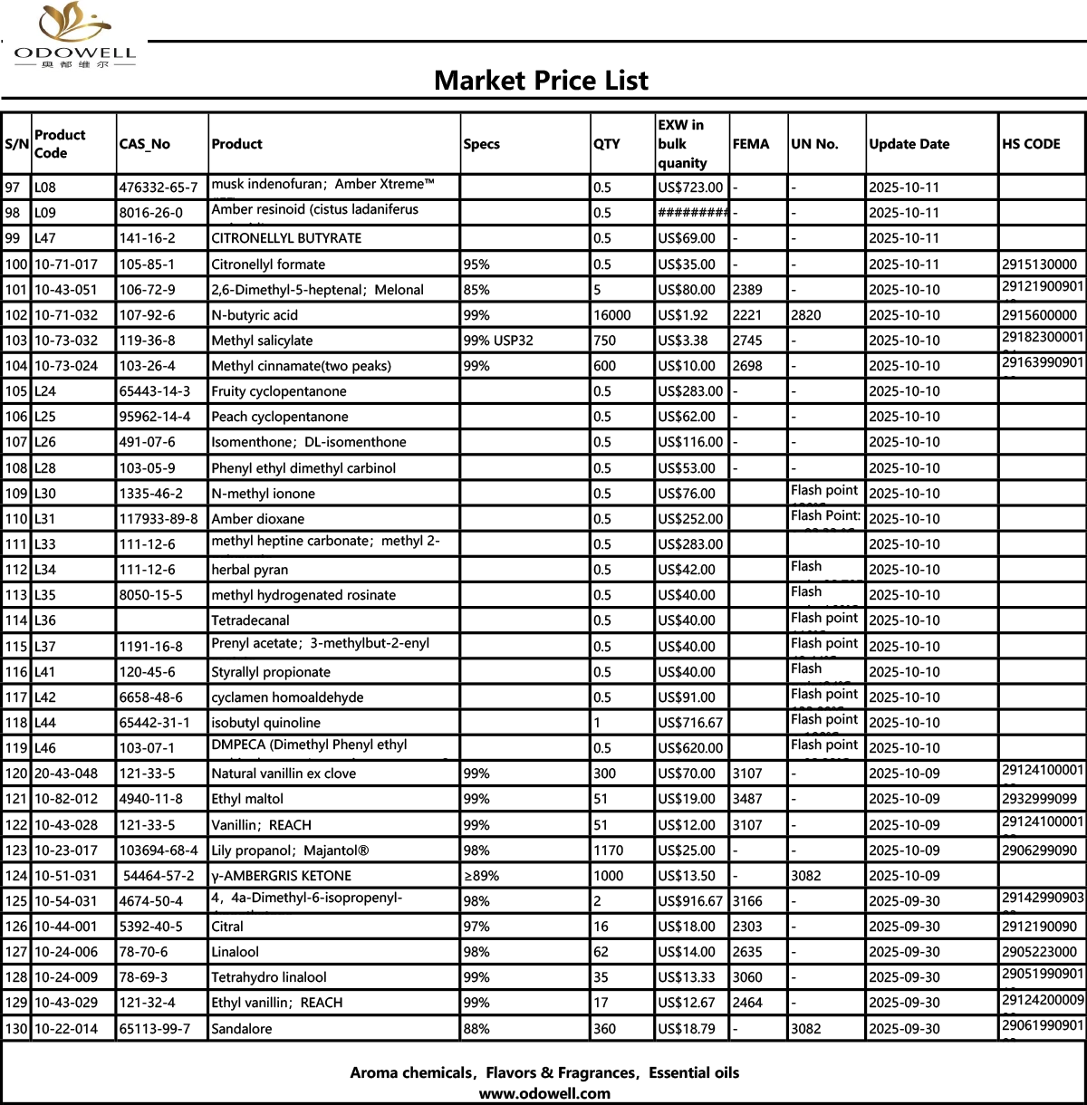 Lista de preços do mercado Odowell-2025.9.30-2025.10.24
